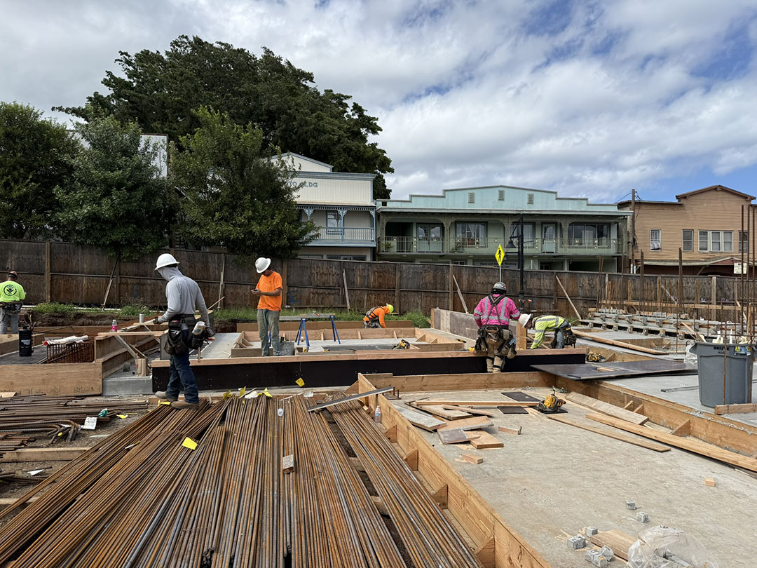 Construction continued at Hālau of ʻŌiwi Art this week, with crews making steady progress on tilt-up panel preparation and underground utilities. Despite a rainout at the start of the week, teams remained on schedule, completing multiple panel pours and advancing critical site infrastructure work.