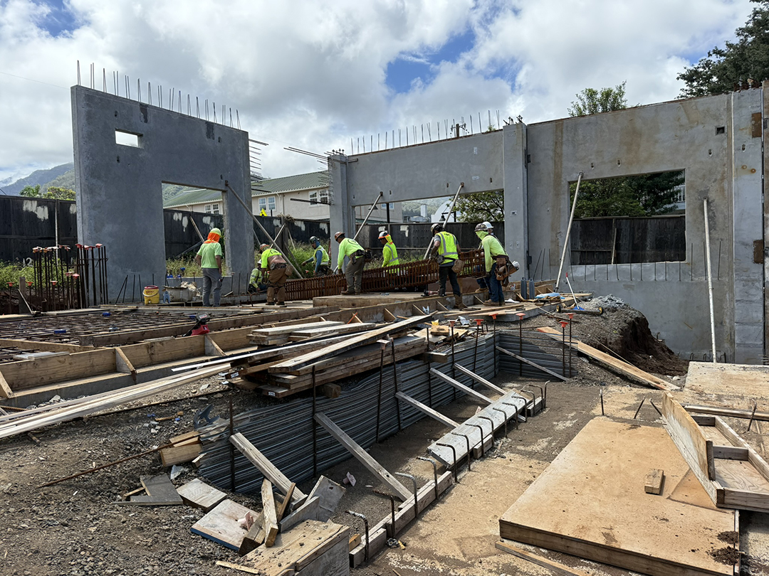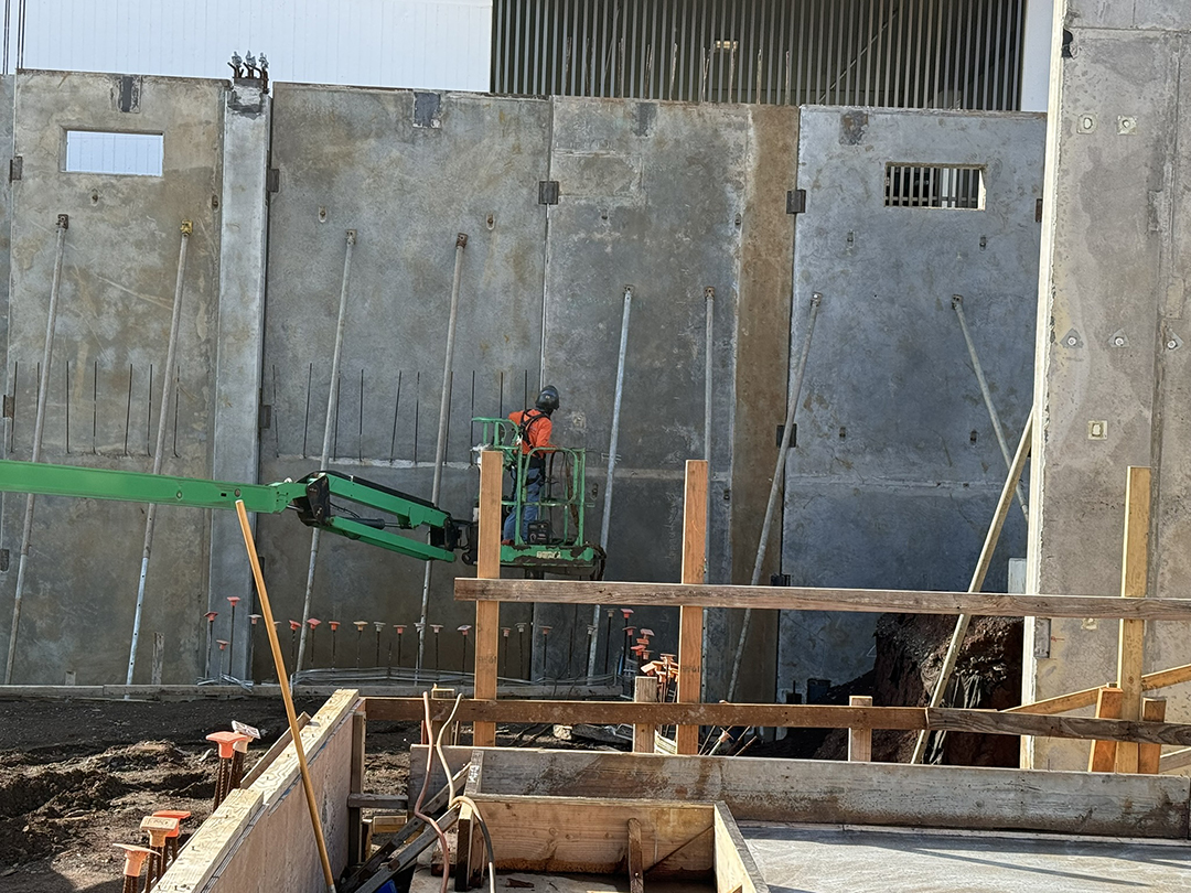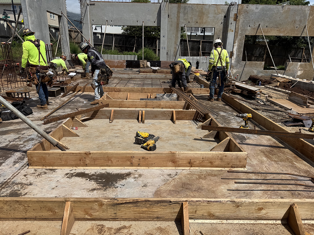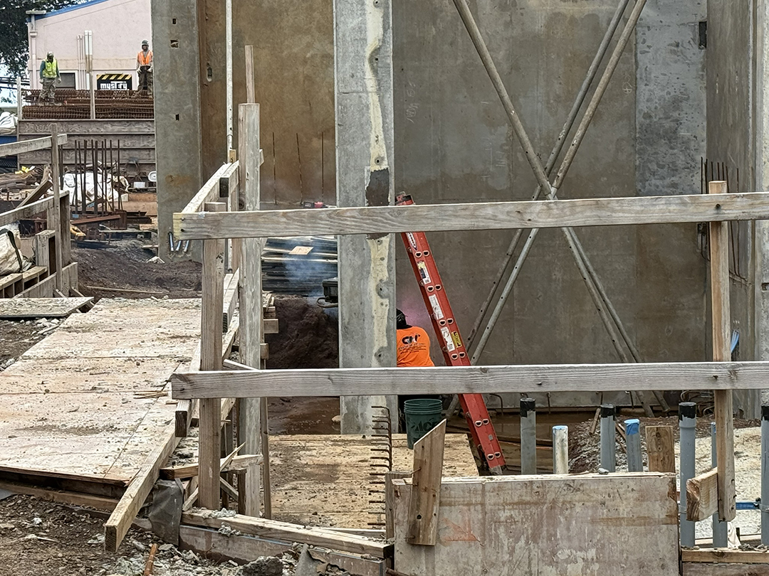 Activity at the Hālau of ʻŌiwi Art site continued with ongoing panel work and structural preparation. Crews focused on welding, excavation, and reinforcing efforts to support the next stages of construction, with multiple trades working concurrently across the site.