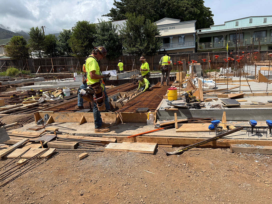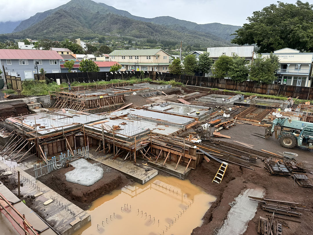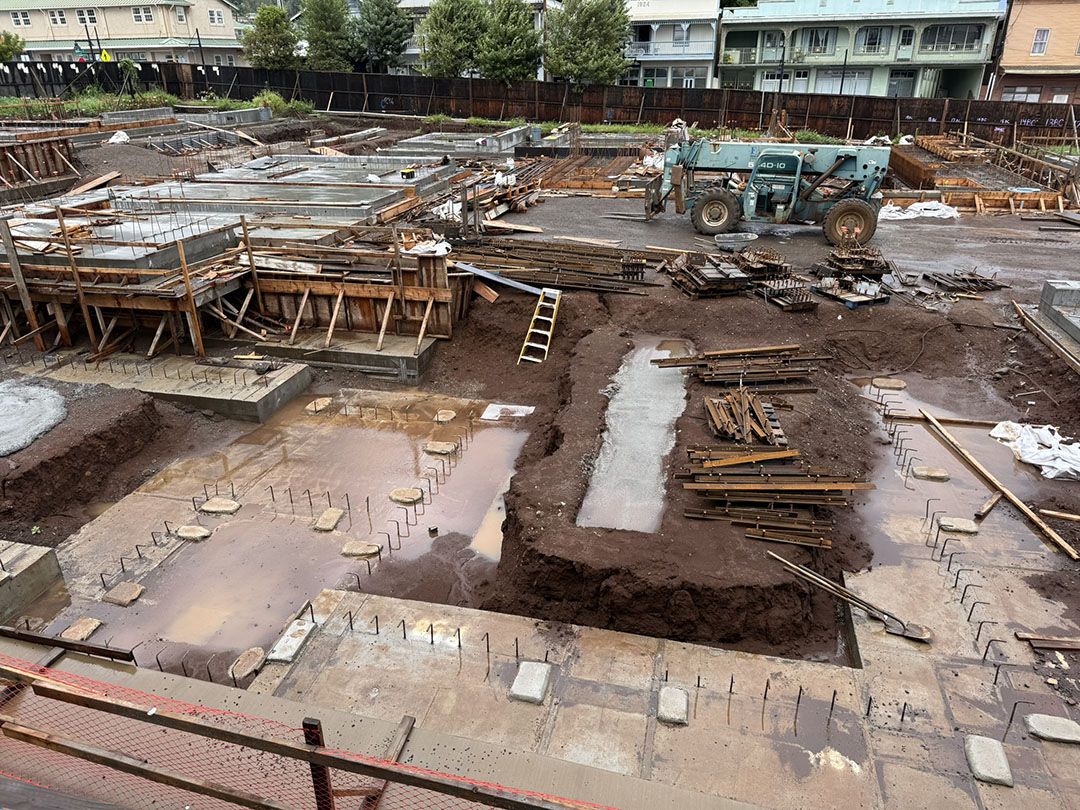 Work at the Hālau of ʻŌiwi Art site was impacted by frequent rain throughout the week, limiting overall productivity. Crews took advantage of drier periods early in the week to continue formwork, embeds, and rebar installation, along with stripping panel forms from the previous pour. Despite weather delays mid to late week, progress continues as crews prepare for the next phase of construction.