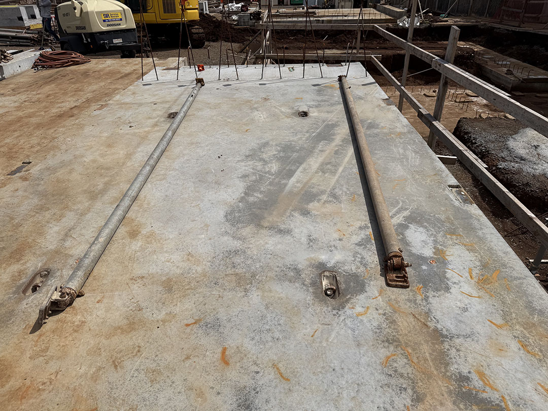 Construction activity continued this week at the Hālau of ʻŌiwi Art site, with crews making steady progress on tilt-up panels and site work as weather conditions allowed.