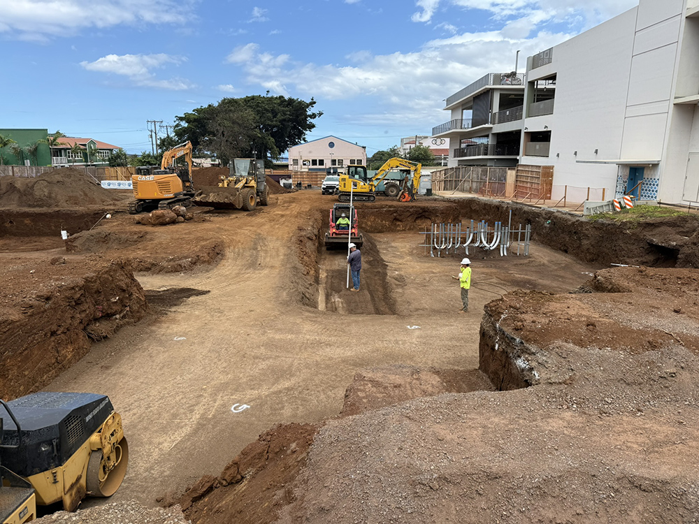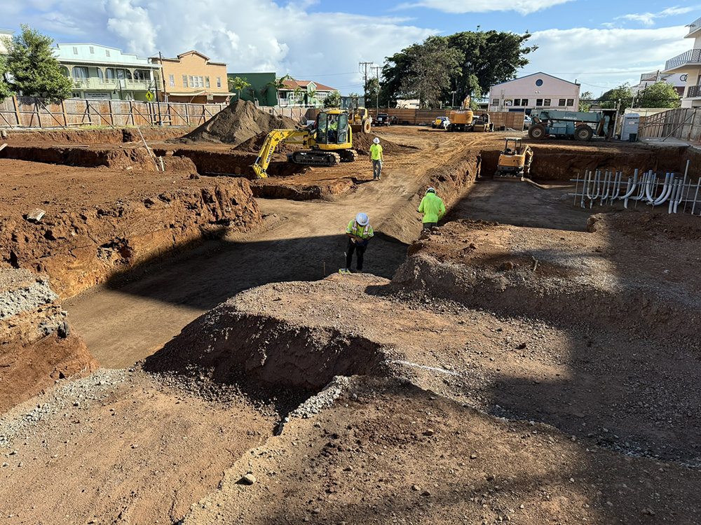 Tom’s Backhoe crew excavates footings for the future Hālau of ʻŌiwi Art building.
